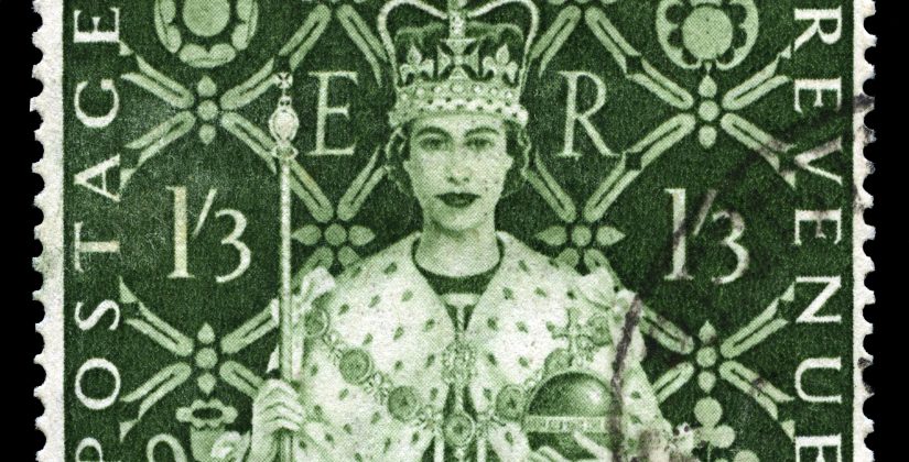 Featured image: A vintage British postage stamp celebrating the Coronation of Queen Elizabeth II (via Shutterstock).