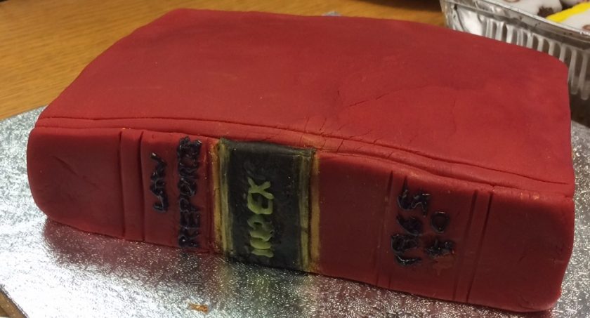 For the print editions, we had a copy of the ‘Red Index’ (aka Law Reports Consolidated Index) familiar to law librarians and practitioners who like to find their case law in the old-fashioned way. Hard to believe this is a cake. It was baked and decorated by one of ICLR’s reporters, Georgina Orde, who normally covers the Court of Appeal (Criminal Division).