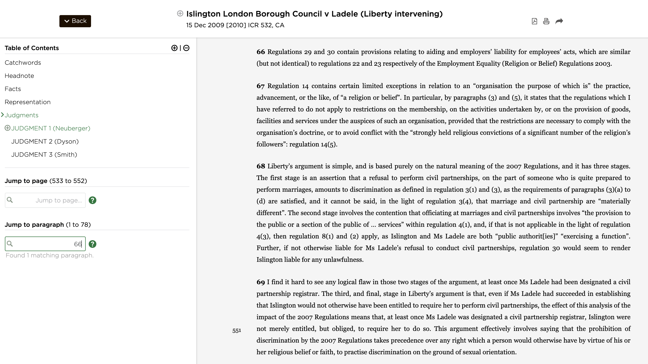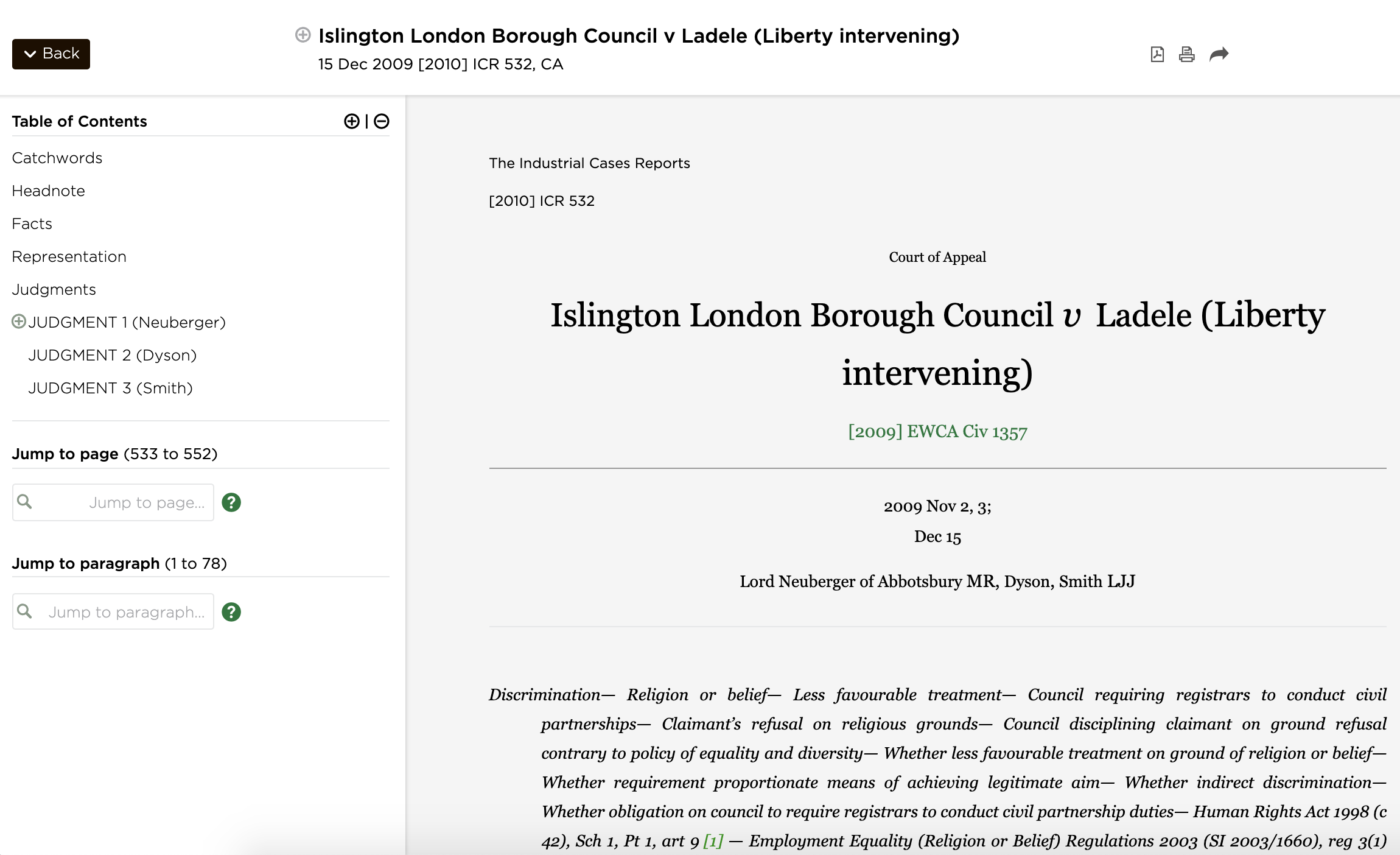 We’ve added a new feature to ICLR.3 enabling users to “jump to” a particular paragraph in our full text law reports. This functionality adds to the ability to jump straight to a page and to navigate precisely to any one of a number of elements in the case report using the Table of Contents on… Continue reading about Features update: ‘Jump to’ paragraph or page and ToC navigation on ICLR.3