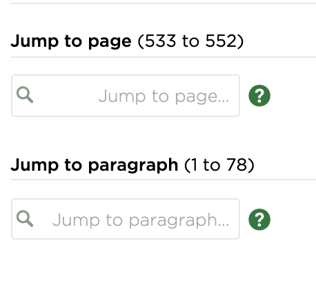 Jump to page and Jump to paragraph then offers a box enabling a user to enter the value of the page or paragraph to which they wish to navigate directly. The range of available pages and paragraphs is shown.