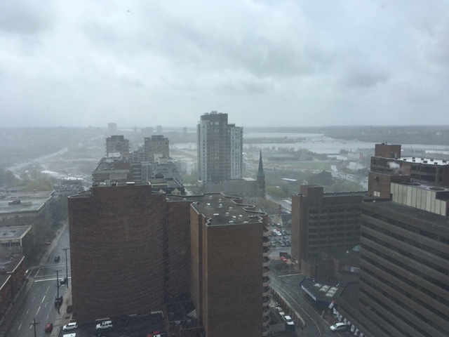 Ottawa seemed on arrival even wetter than Toronto. The river is at flood levels, just about visible from our hotel rooms at the City Centre Delta Hotel where the conference is being held.