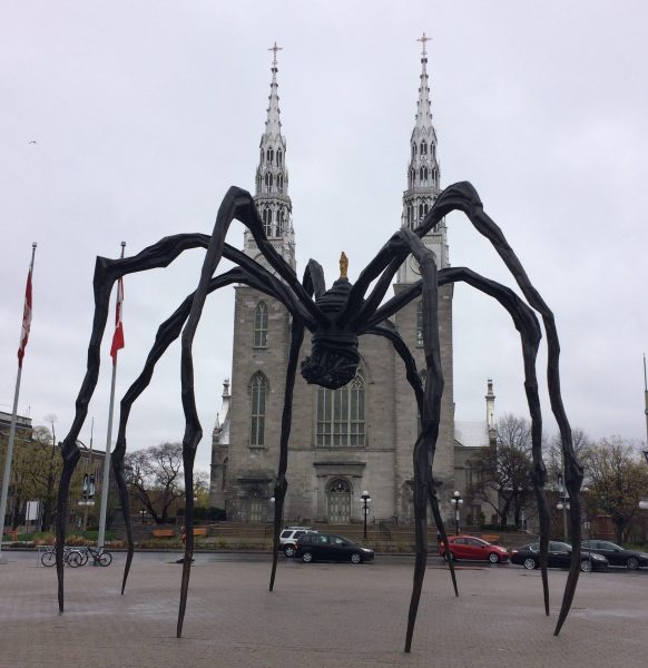 Outside the art museum is a sculpture by Louise Bourgeois that is either the one that was in the Turbine Hall of Tate Modern in London when it first opened, or one very like it. The new Tate Modern extension has a gallery devoted to Bourgeois’s work, including a smaller spider. This one is called Maman and appears to be giving a lift to the statue of the Virgin Mary that fronts Notre Dame Cathedral across the road. It’s all in the eye of the beholder.