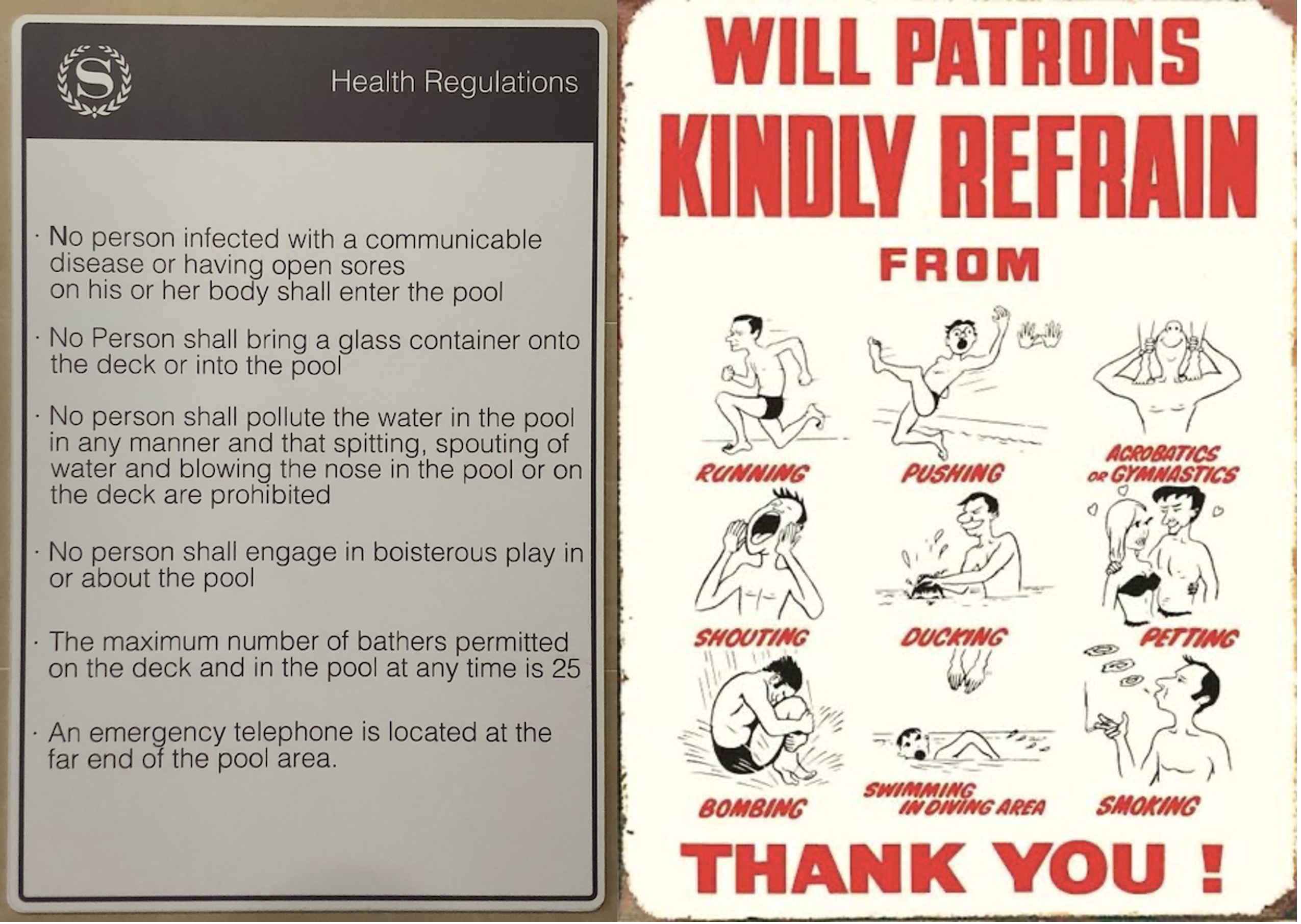 Compare, for example, these two different ways of publicising the rules of conduct in a public swimming pool: