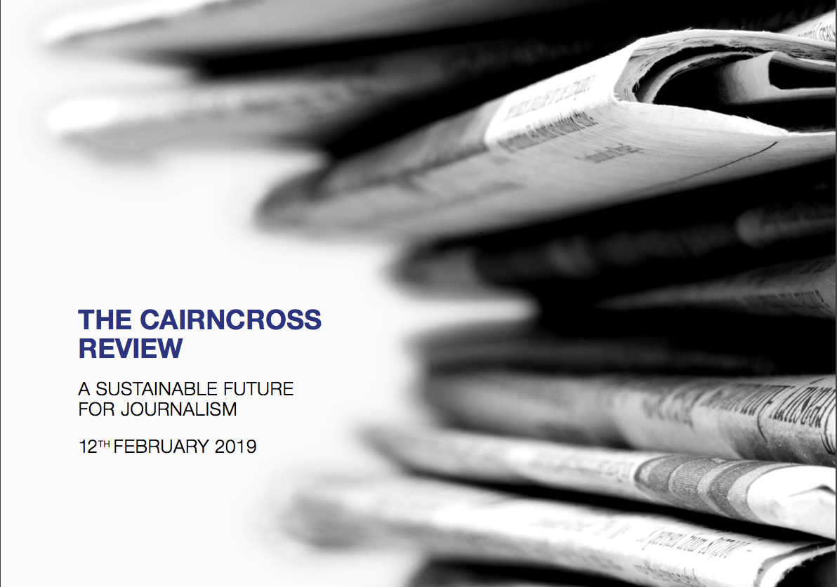 A major review of the future sustainability of “high quality” journalism conducted at the behest of the Department for Digital, Culture, Media and Sport, has now issued its report, The Cairncross Review: a sustainable future for journalism.