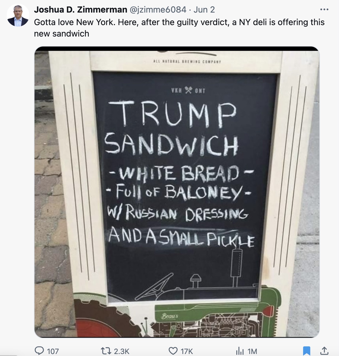 The Supreme Court may have let Trump off Scotus-free, but the New York court had the courage of his (34) convictions. Sentencing has been delayed.