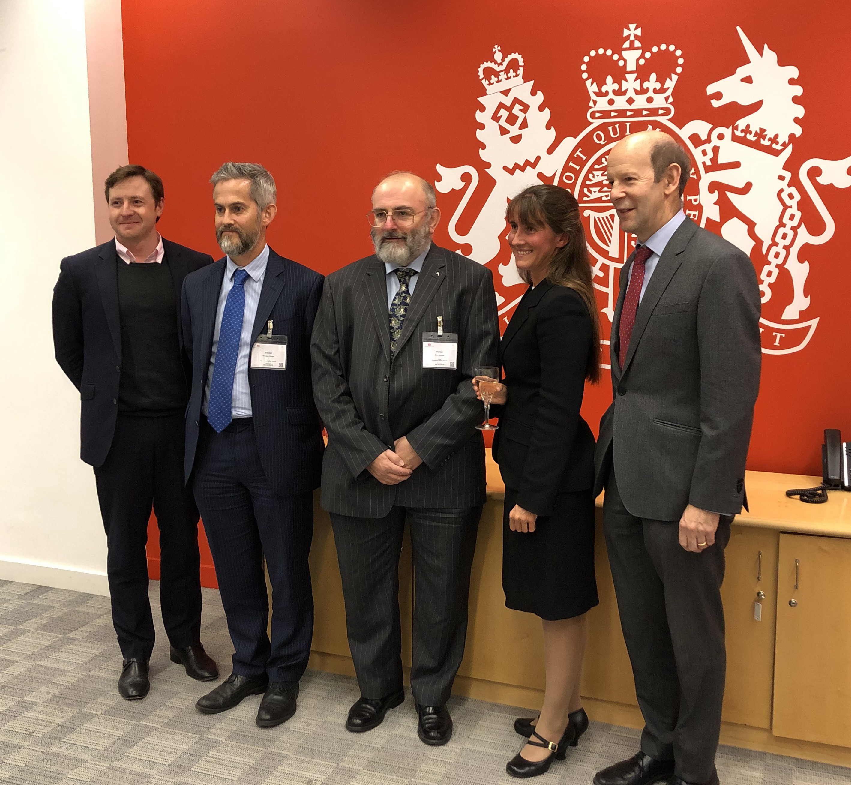 Our picture shows, from L to R: Daniel Wand (last year’s winner), Brendan Wright (Editor elect), Clive Scowen (current Editor), winner Tamasin Graham, and Mr Justice Roth.