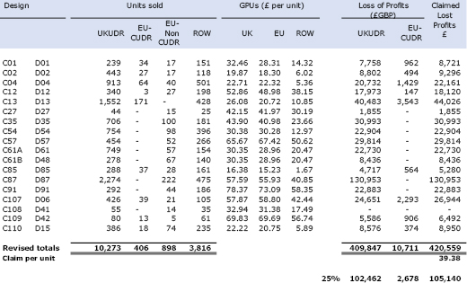 (a) 20% of the Defendants' infringing sales were sales that the Claimants would have made. The Claimants are therefore entitled to lost profits damages in the sum of £74,847.92;
