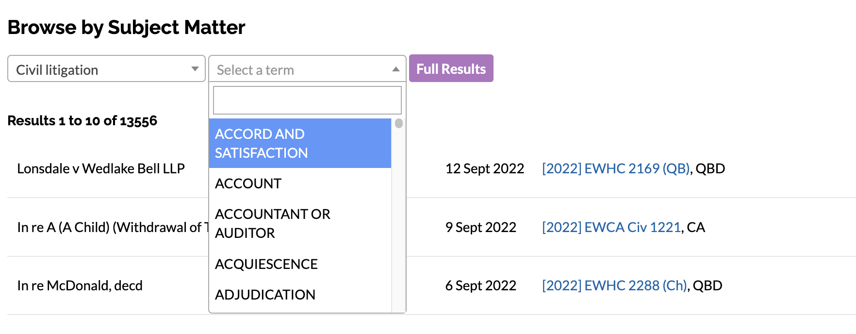 For more information on using the Full Search page, see this help page: https://www.iclr.co.uk/products/iclr-4/case-search-on-iclr-4/