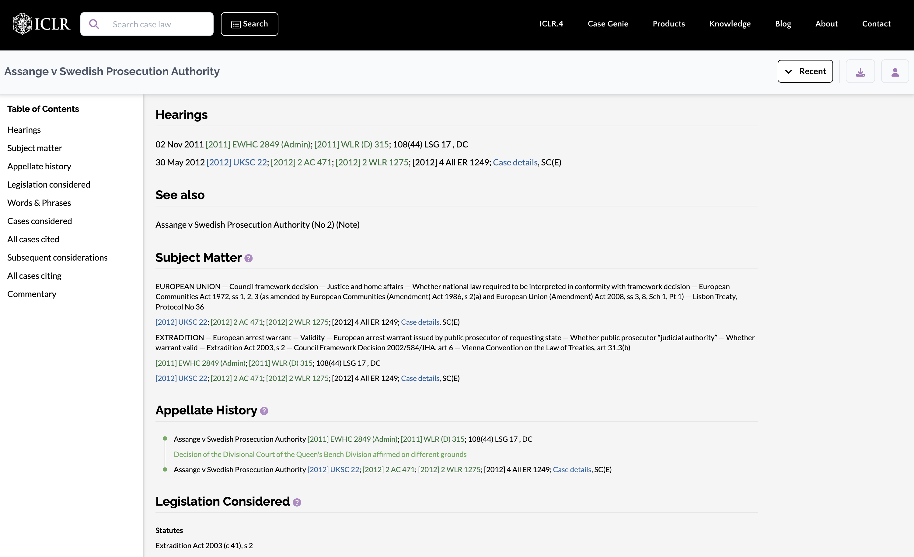 ICLR.4’s “Case Info” pages are unique to the platform and give you an authoritative overview of the broader context and significance of the case.